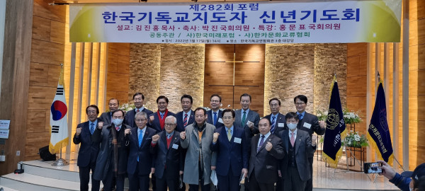 (사)한국미래포럼(상임회장 박경진 장로)과 (사)한카문화교류협회(회장 권승달 장로)는 공동 주관으로 지난 1월 17일 한국기독교연합회관 3층 대강당에서 제282회 포럼 ‘한국기독교지도자 신년기도회’를 갖고 국가안보와 나라와 민족을 위해 기도하는 시간을 가졌다.